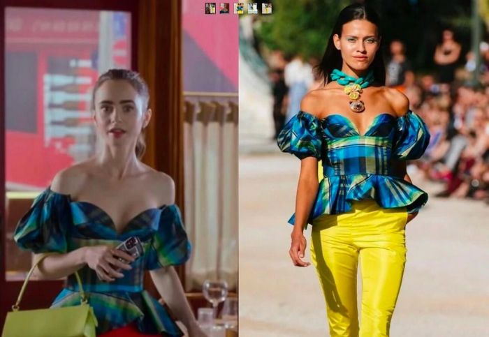 Ανάμεσα στα τέσσερα κομμάτια που εμφανίζονται στον 2ο κύκλο της hit σειράς του Netflix, είναι δύο φορέματα, ένα τοπ και ένα τζάκετ. Η τηλεοπτική Emily φόρεσε ένα chic και θηλυκό φόρεμα, με το όνομα Emily, από σατέν ύφασμα με πιέτες, στρογγυλή λαιμόκοψη, ανοιχτή πλάτη και full skirt πάνω από το γόνατο. Η Lilly Collins το φοράει σε χρώμα ματζέντα, ενώ μπορεί να το βρει κανείς σε 13 αποχρώσεις.